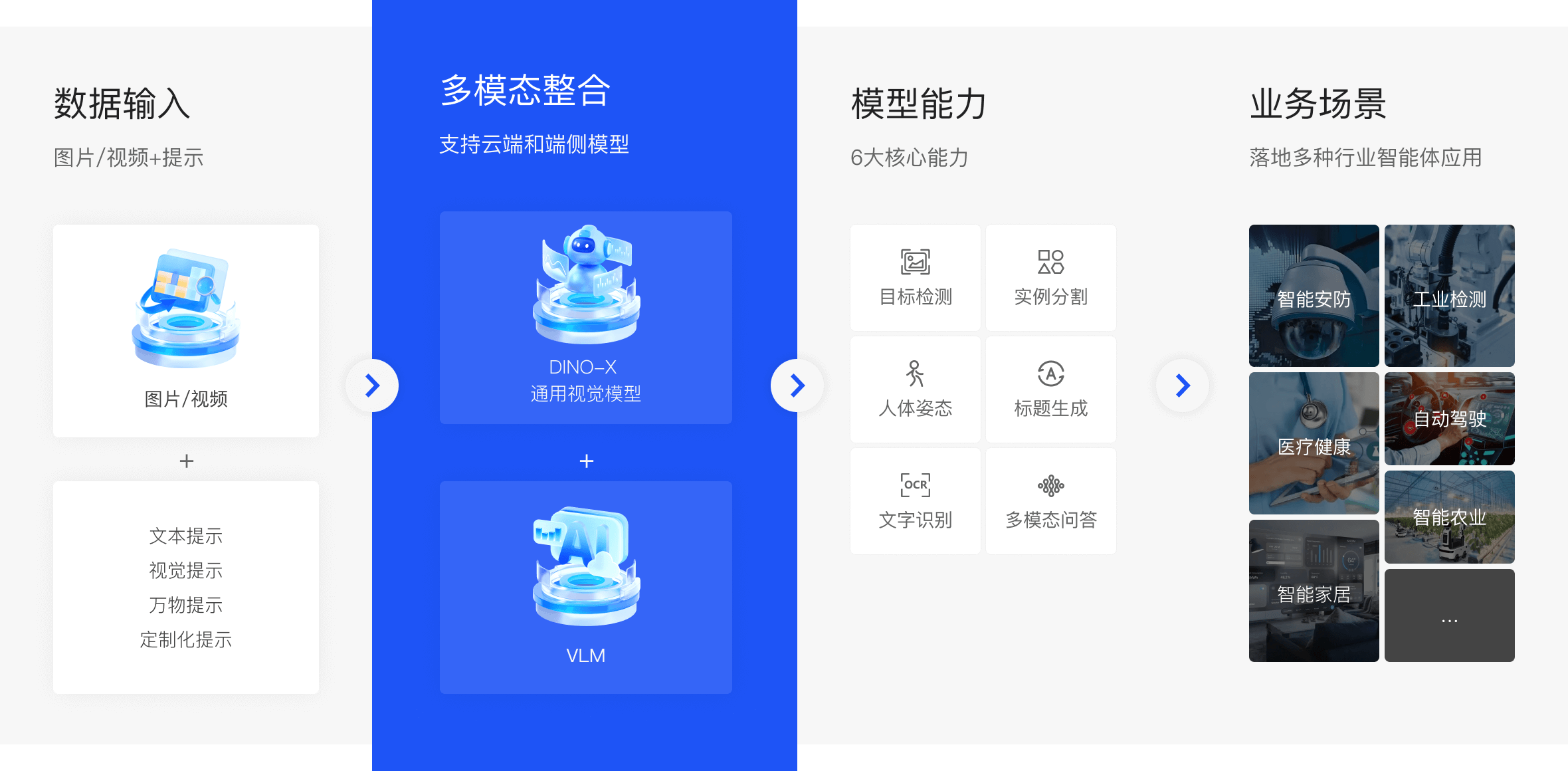 DINO-X 开放平台提供领先的目标检测、关键点检测、服装换色等计算机视觉服务,支持无缝集成与灵活统计,让资源管理更加高效。无论是快速验证还是大规模部署,我们为您提供高性能的智能解决方案。