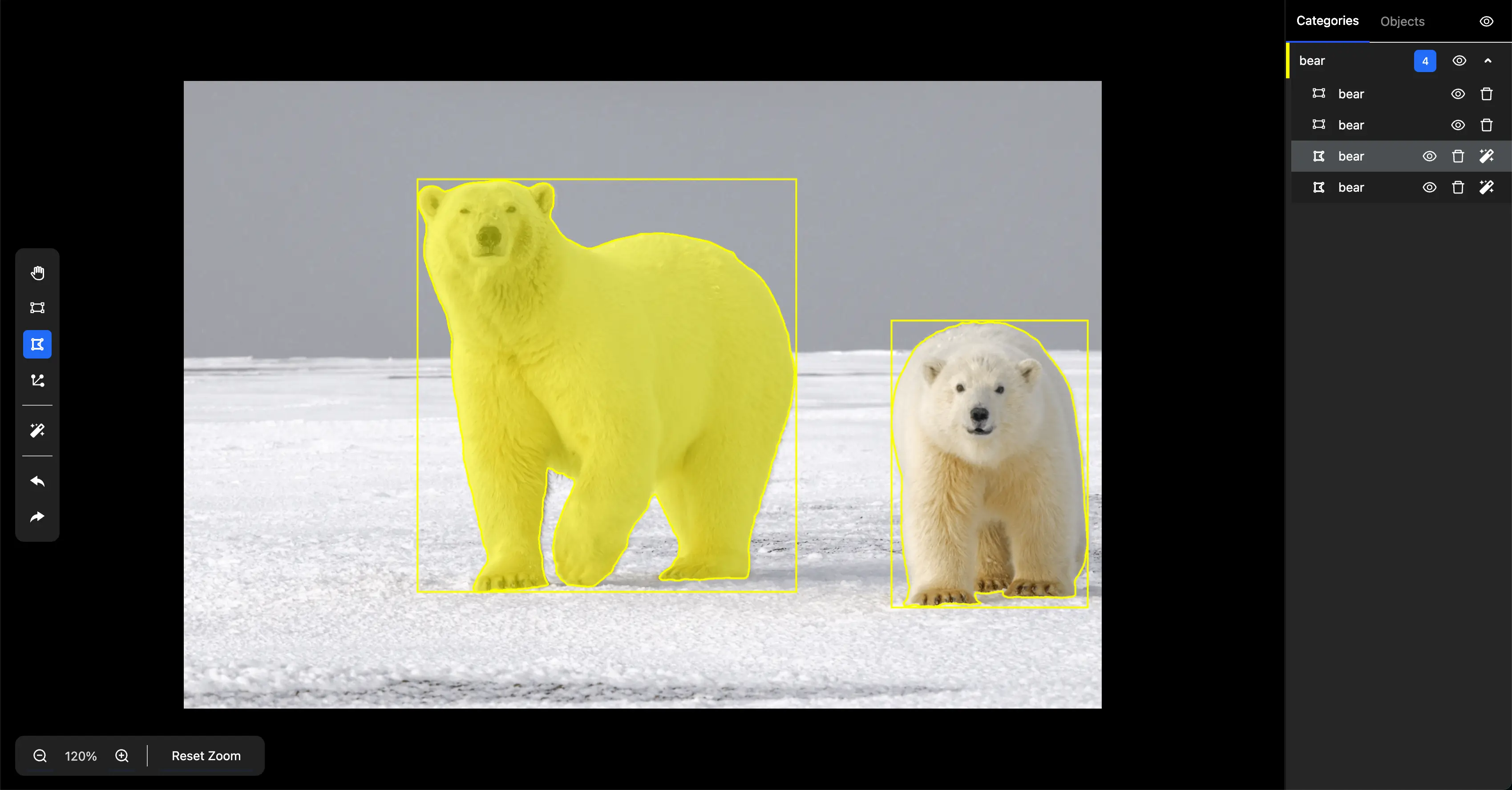 DeepDataSpace提供了开箱即用的标注工具,支持目标检测、图像分割、姿态估计等常见标注任务,并集成了交互式智能标注算法,帮助用户快速准确地进行数据标注。